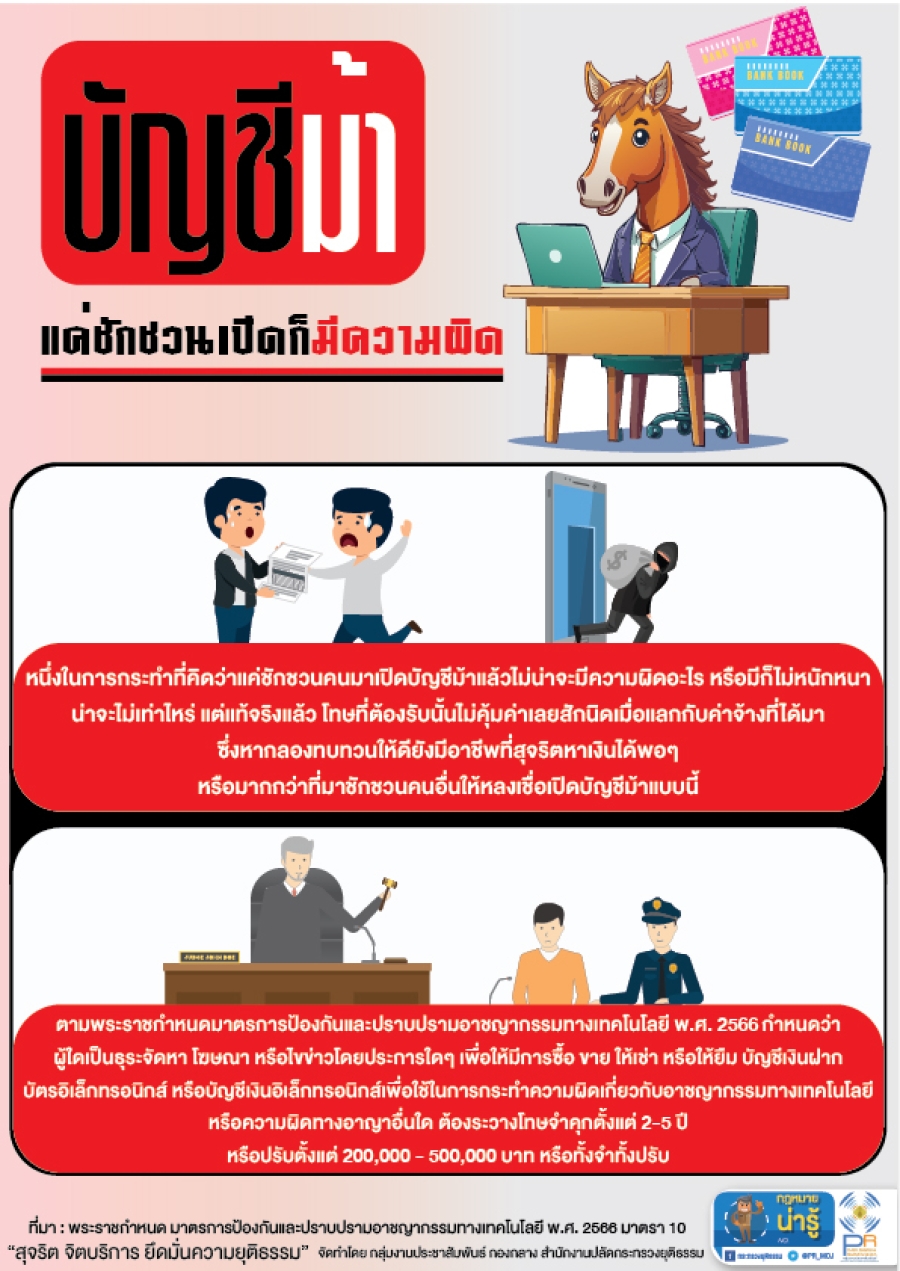 ประชาสัมพันธ์กฎหมายน่ารู้ ตอน บัญชีม้า แค่ชักชวนเปิดก็มีความผิด วันจันทร์, 29 กันยายน 2568 14:12 Print Email back to top